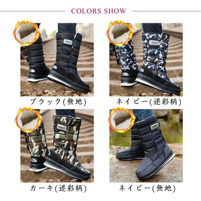 スノーブーツ ロング メンズ スノーシューズ 裏起毛 裏ボア 防水 防寒 滑らない ウィンターブーツ 雪用 雪対策 防寒ブーツ あったか 暖かい ボアブーツ 厚底 EVA素材 軽量 軽い 防滑 スキー アウトドア 秋冬 ロングブーツ 大きいサイズ おしゃれ 無地 迷彩柄