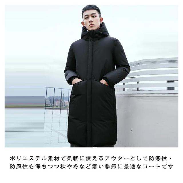 フード付き 防風 ロング丈 ダウンコート アウター アウトドア ロングコート メンズ 冬 ダウンジャケット 厚手 防寒 暖かい あったか 冬物 ゆったり 大きいサイズ シンプル 無地 ダウンジャケット ダウンジャケット 通勤 通学 カジュアル 秋