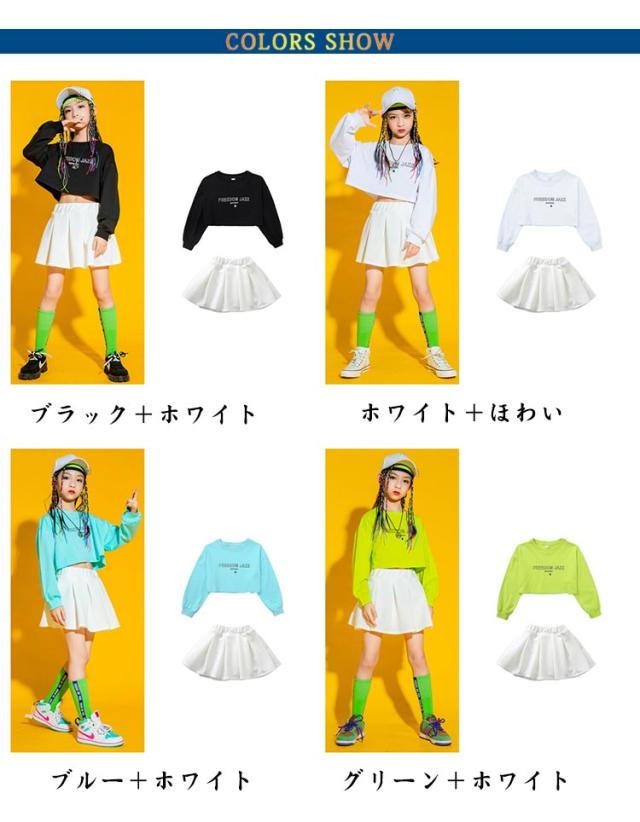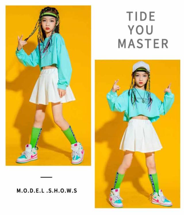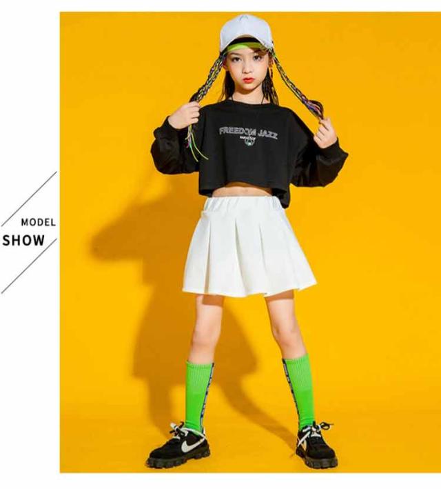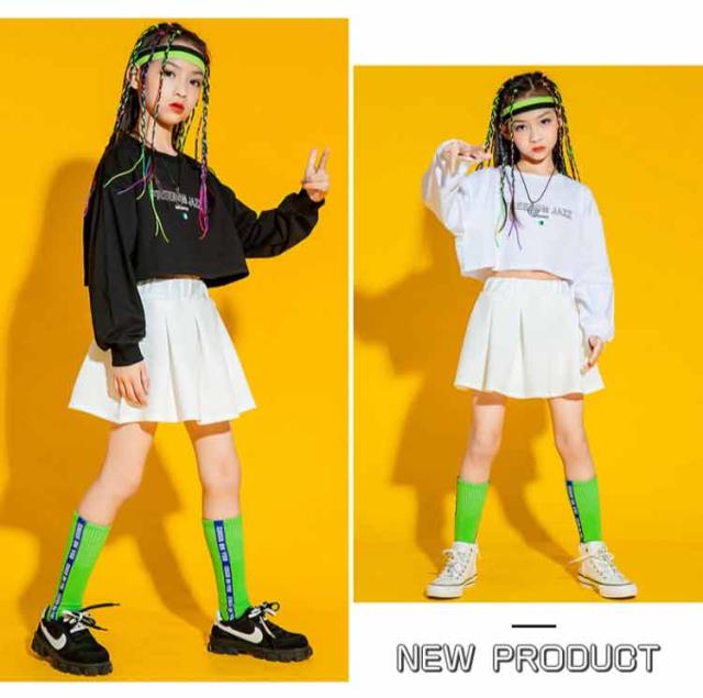 キッズ ダンス スカート 衣装 練習着 hiphop kpop 韓国 ストリート ボトムス Tシャツ 長袖 子供 ガールズ 女の子 キッズダンス衣装 上下セット 可愛い 舞台 演出服 ウエストゴム イベント 快適 プレゼント ギフト 送料無料 大きいサイズ