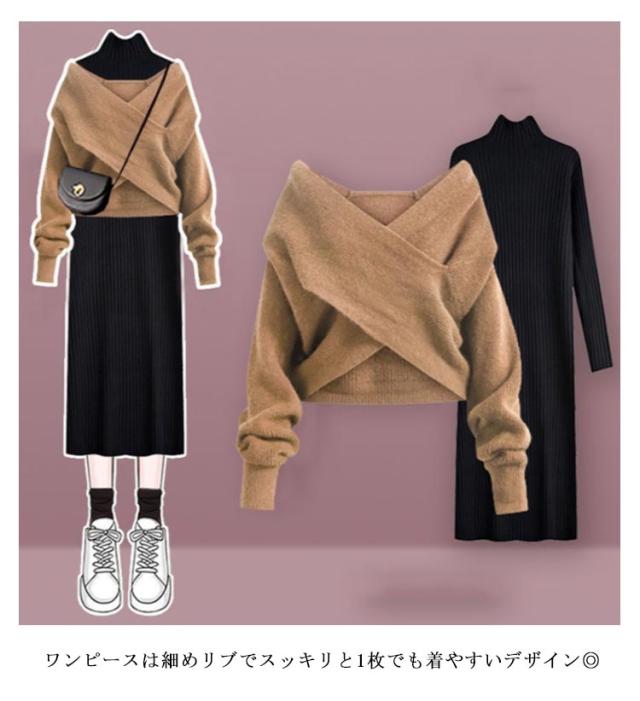 | 着回し力も抜群な嬉しいワンピースセット! 1枚で華奢見えが叶うクロスのトップスと人気のシルエットワンピースがセットになった1着。 フロントのクロスデザインが目を惹くこなれニットは、様々なトップスと相性が良く、レイヤードスタイルを楽しんでいただけます。 ワンピースは細めリブでスッキリと1枚でも着やすいデザイン◎ セットで合わせるだけでこなれた印象に仕上がります。 シンプルだからお手持ちの小物と合わせて自分らしいコーデに。 | |