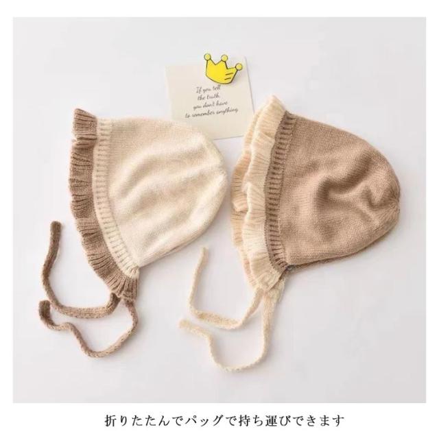フリル付きニット帽 赤ちゃん 新生児 帽子 ニット帽 紐付き あごひも 暖かい 子ども こども 保温 防寒 ボンネット 赤ちゃん 帽子 秋 冬 ベビー 男の子 女の子 ニット帽 寒さ対策 かわいい 冬 女の子 男の子 キッズ 可愛い 帽子 紐付き 暖かい コットン 送料無料