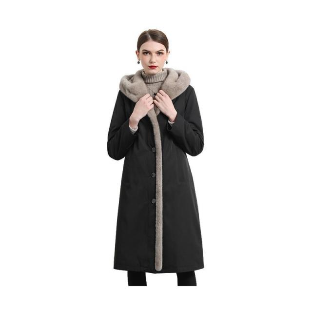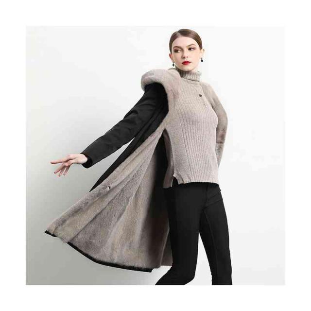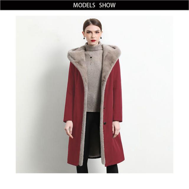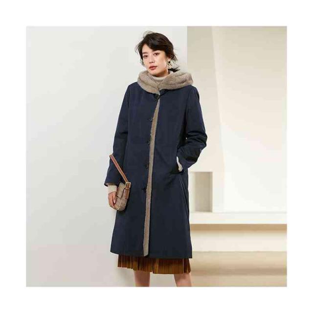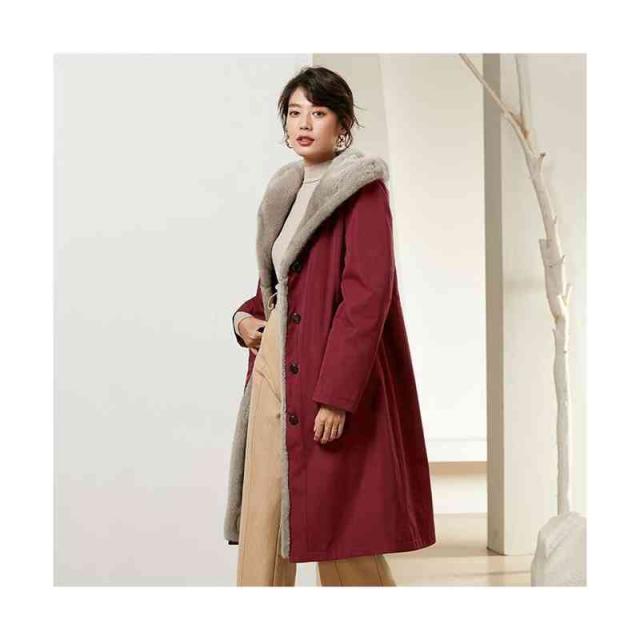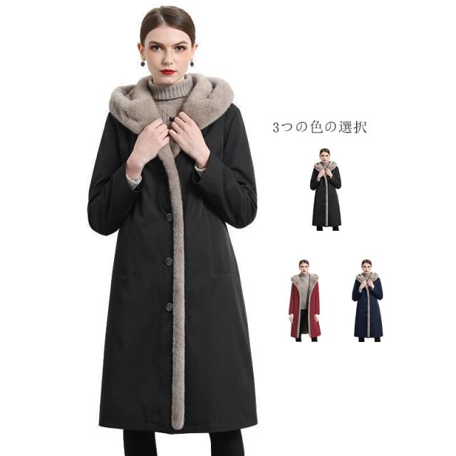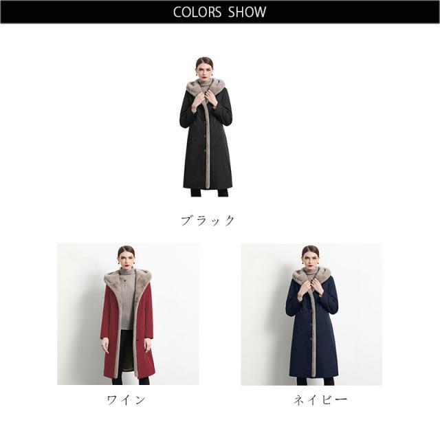 送料無料 エコファー ファー ロングコート ファーコート コート レディース ロングアウター ロング ビッグシルエット アウター フード ブラック ワイン ネイビー
