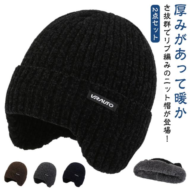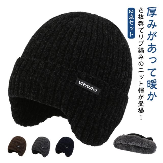 メンズ 耳あて ニット帽 冬 暖かい 帽子 ニットキャップ 2点セット 裏起毛 防寒 メンズ レディース スキー ニット 帽子 大きいサイズ あったか 寒さ対策 防風 スポーツ おしゃれ シンプル 防寒帽子 耳当て付き 自転車 通勤 通学 旅行 スキー バイク アウトドア 無地
