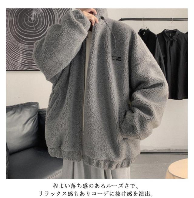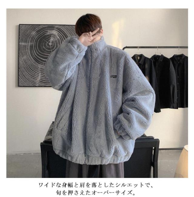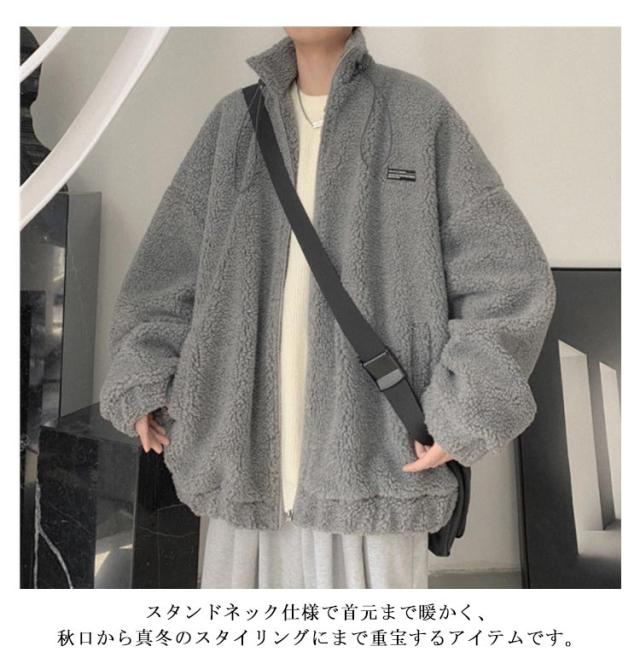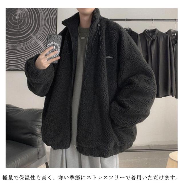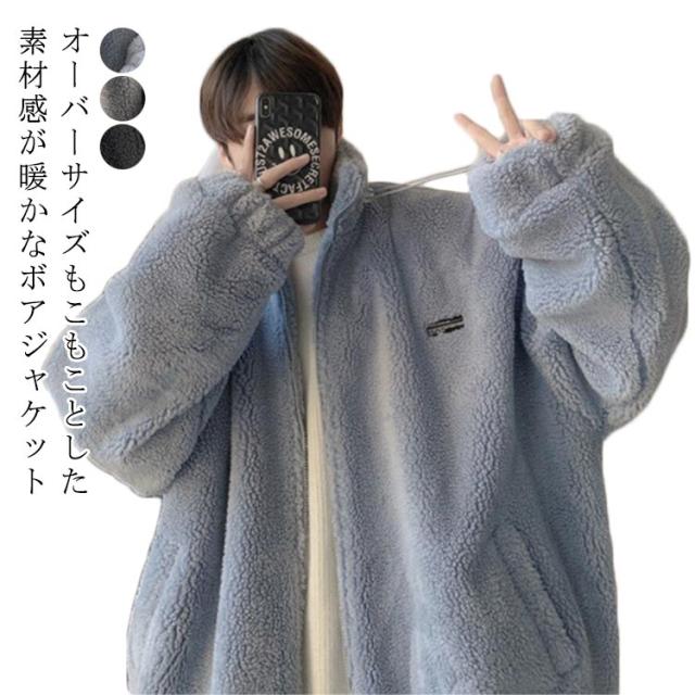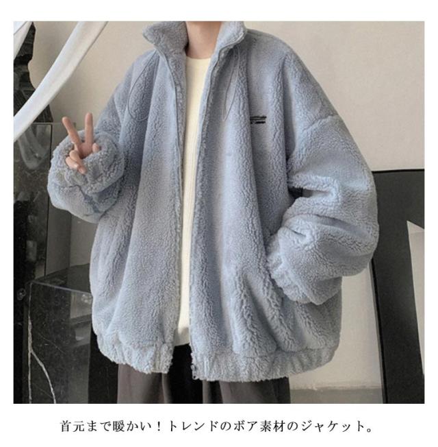 レディース ボア シンプル スタンドネック ボアコート ジャケット ボアブルゾン メンズ あったか もこもこ ボア ブルゾン 秋冬 カジュアル 防寒 無地 おしゃれ ジップアップ 体型カバー 男女兼用