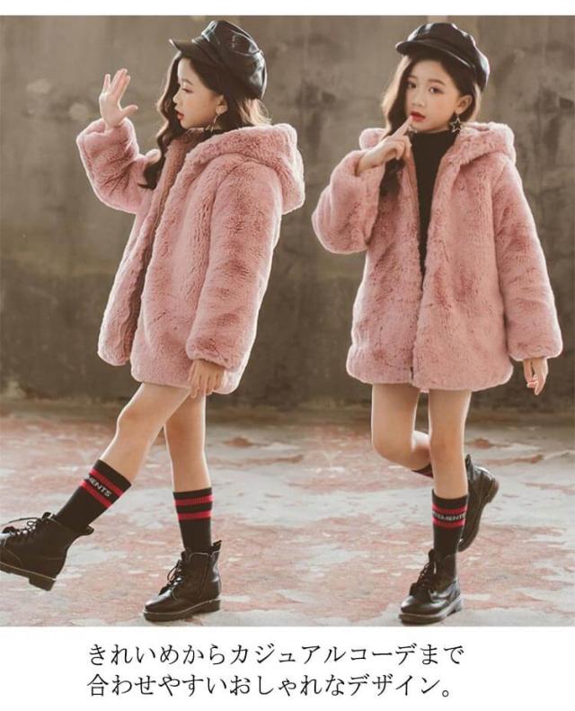 ファーコート オーバーコート もこもこ 子供 ボアコート ボアジャケット キッズ 女の子 ふわふわ ロングコート フード付き 可愛い 防寒 秋冬 子供服 中綿コート あったか カジュアル 冬 防風 アウター 送料無料 フェイクファー お出かけ プレゼント ギフト クリスマス