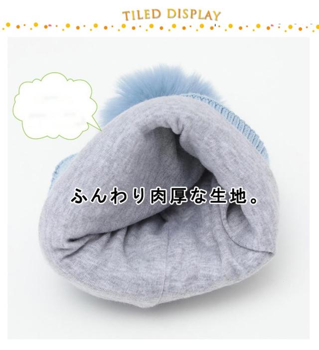 | ポンポンニット帽子 耳当て付きで冬でもあったか。 ふんわり肉厚な生地。 寒い日もほっかほか!肌ざわりもよく気持ちいい! | |