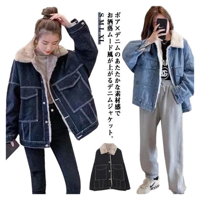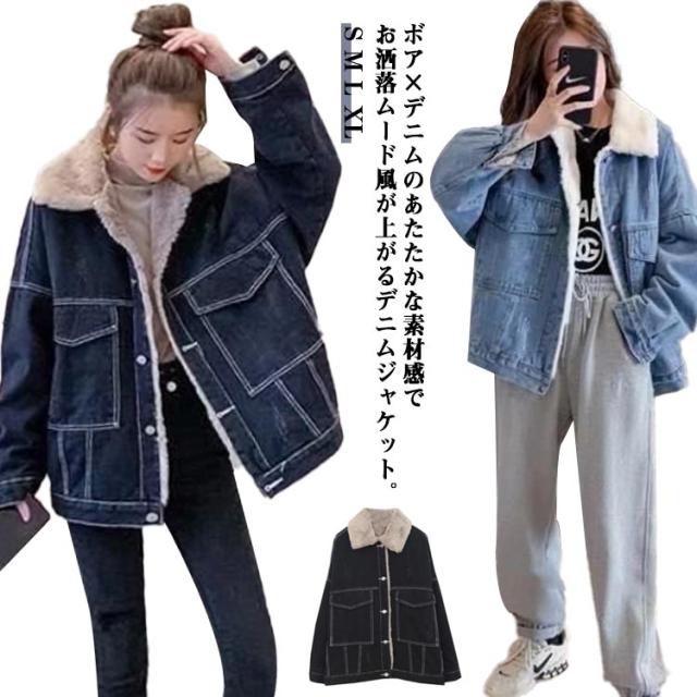 コート カジュアル デニム レディース デニムボアジャケット ジャケット デニム 大きいサイズ デニムコート 裏起毛 モコモコ 襟付き ゆったり デニムジャケット デニムボアジャケット 厚手 防寒 20代 30代