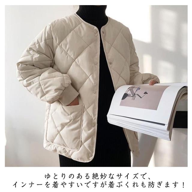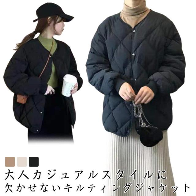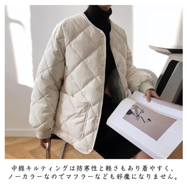 ノーカラージャケット 大人 冬 キルティングコート ノーカラー コート レディース ジャケット 中綿 ノーカラー 秋冬 軽量 中綿コート ショート丈 アウター 中綿ジャケット ブルゾン あたっか 防寒 おしゃれ きれいめ