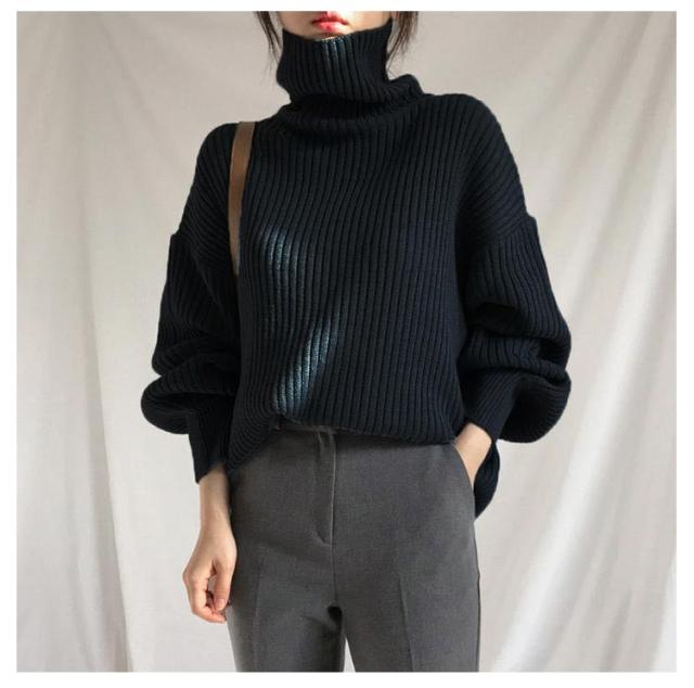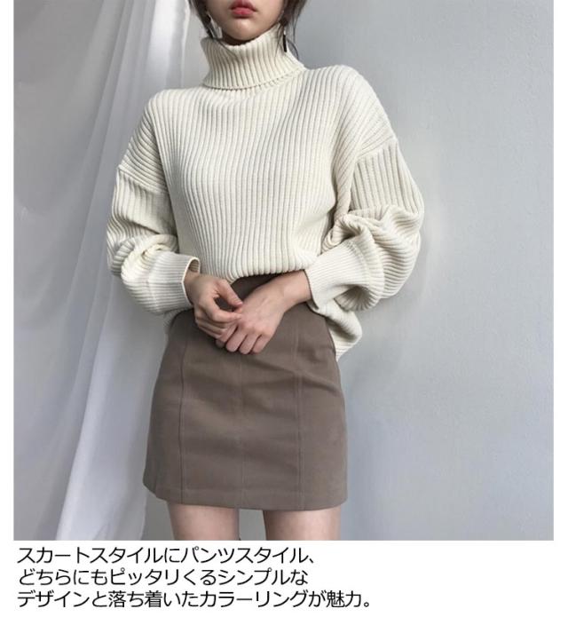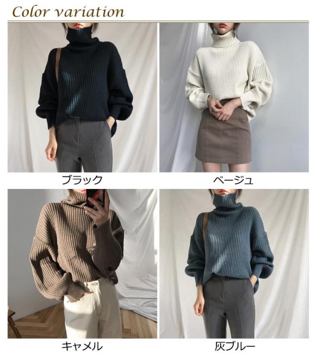 シンプル ビッグシルエット ボトルネック リブニット バルーンスリーブ プルオーバー 長袖 送料無料 バルーン袖 セーター ニットセーター ハイネック 送料無料 無地 ストレッチ あったか 秋冬 防寒 上品 エレガント 大人