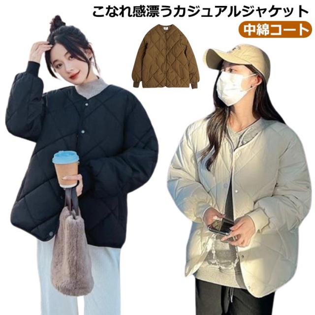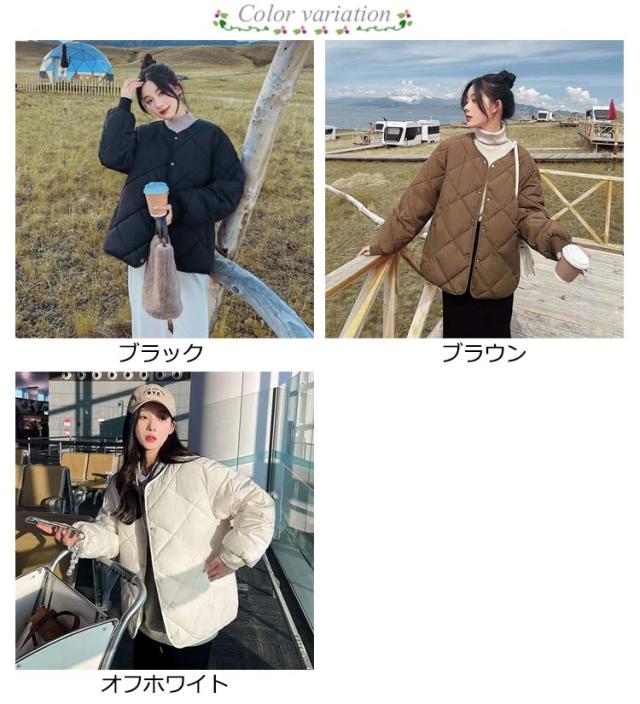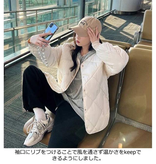 中綿コート ショート丈 秋冬 ノーカラー トップス コート ダウン風コート レディース リブ袖 キルティング アウター おしゃれ ジャケット 長袖 中綿コート 防寒 保温 無地 カジュアル シンプル お出かけ 大人 通勤 通学