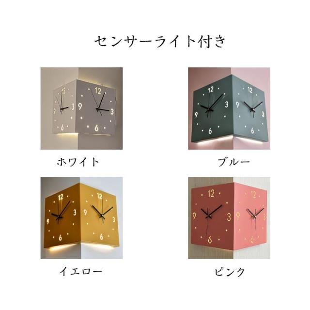 両面掛け時計 センサーライト付き 掛け時計 掛け時計 静音 壁掛 壁掛け時計 コーナークロック 軽量 北欧 おしゃれ 両面掛け時計 見やすい 90度デザイン