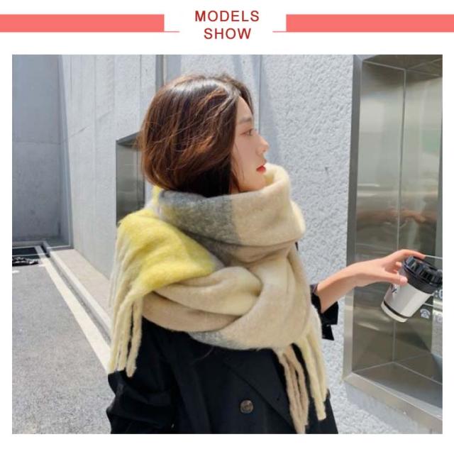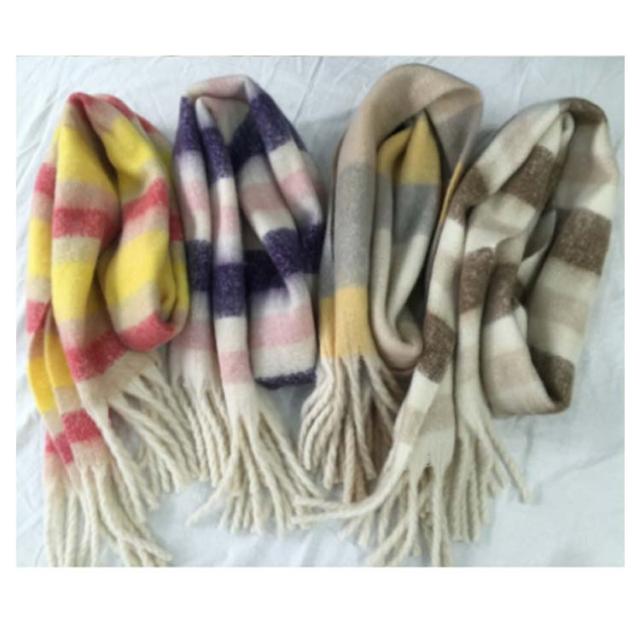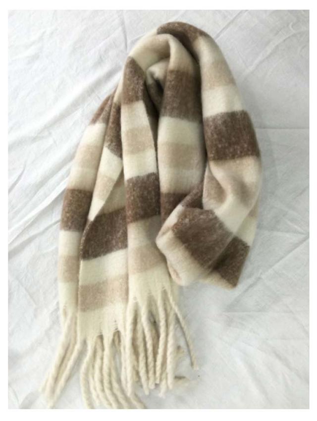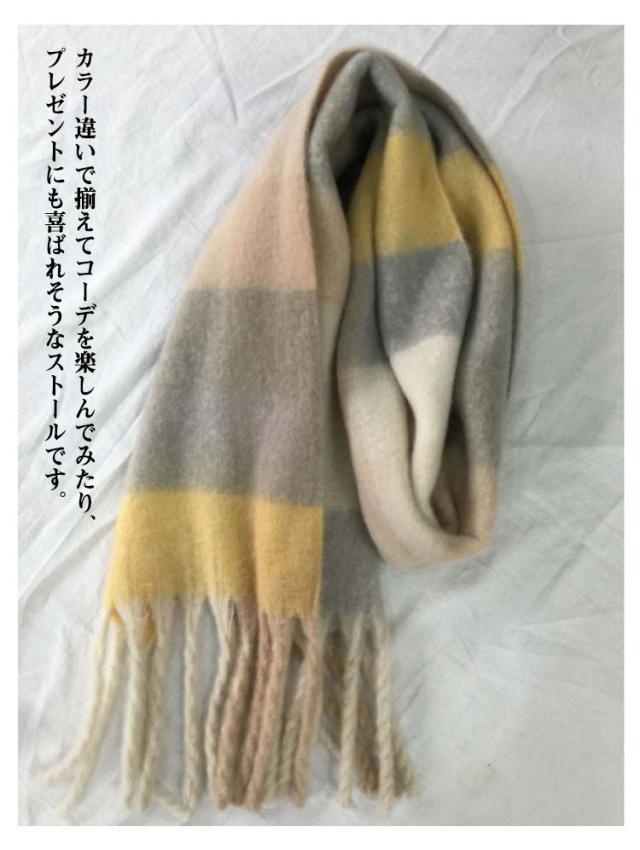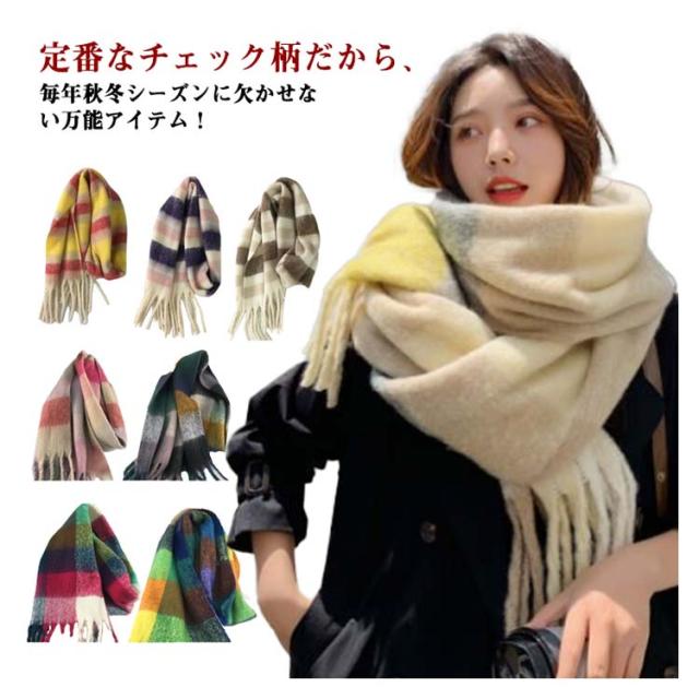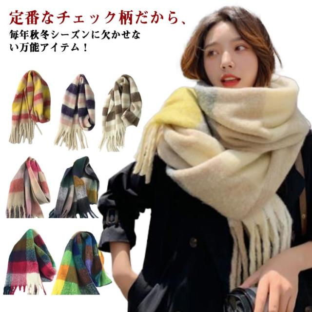 | 定番なチェック柄だから、毎年秋冬シーズンに欠かせない万能アイテム! ふんわりと柔らかで厚みがあり、まるでカシミヤのようなしっとりなめらか肌触りで女性の大敵な冷えから守ってくれるから。 大判サイズで、厚過ぎないほどよい生地感で、動きに揺れるお洒落なフリンジもポイント カラー違いで揃えてコーデを楽しんでみたり、プレゼントにも喜ばれそうなストールです。 | |