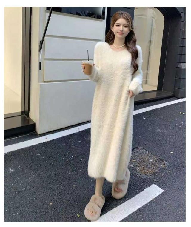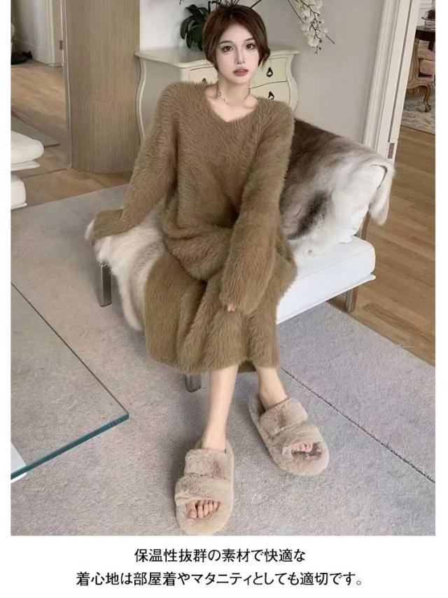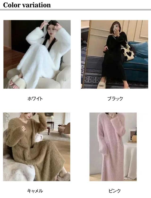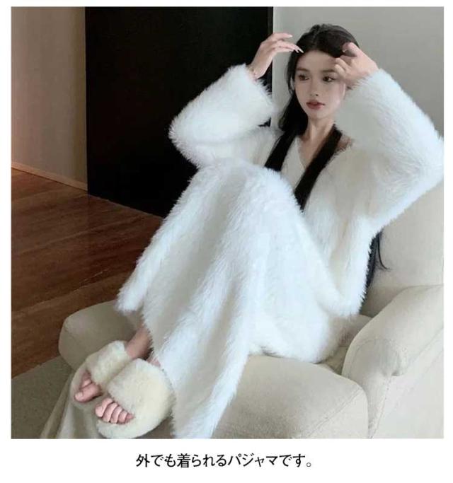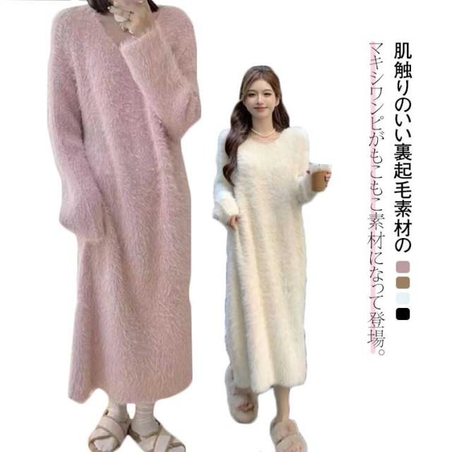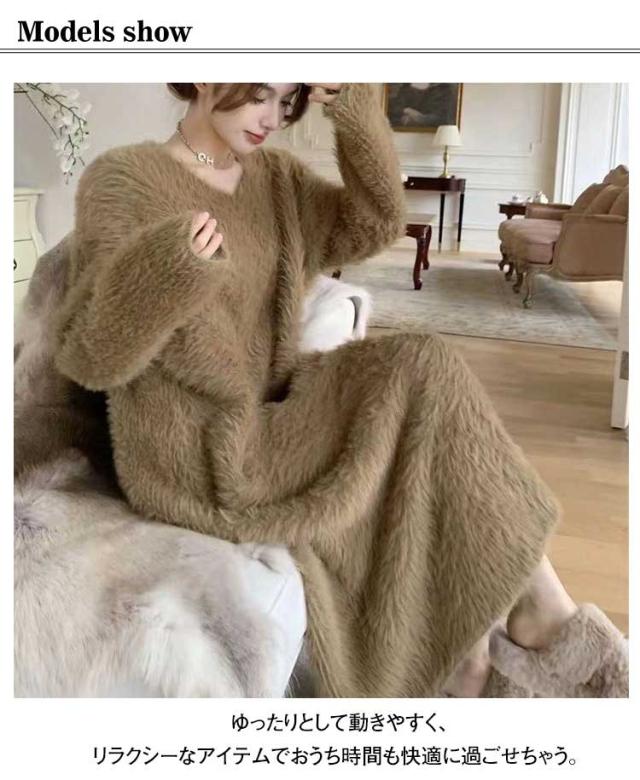 もこもこ パジャマ ワンピース レデイース ルームウェア フェイクファー ゆるふわ 裏起毛 暖かい ワンピース 部屋着 ロング マキシ ワンピ ふわふわ 無地 着る毛布 秋 秋冬 冬 可愛い 長袖 ラウンドネック ロング丈 送料無料