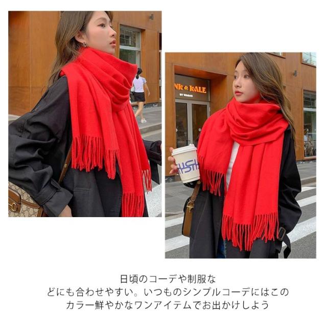 | 全15色!【暖かく柔らかいストール】 ふんわりとした暖かいアクリルは、保温と保湿性に大変優れているのが特徴です。織維に空気を覆うことで、放熱を抑える作用がある為、とても暖かく、寒い冬にも大活躍です。 肌触りがとても柔らかく、一日中つけていてもチクチクしてない。 大判なのに、豊んでみるとこんなにコンバクト。バッグに1枚にしのばせてバッグに一-枚入れていると、ちよっと肌寒い時、ひざ掛けが欲しい時、このコンバクトさがうれしい! 日頃のコ一デや制服などにも合わせやすい。いつものシンプルコ一デにはこのカラ一鮮やかなワンアイテムでお出かけしよう | |