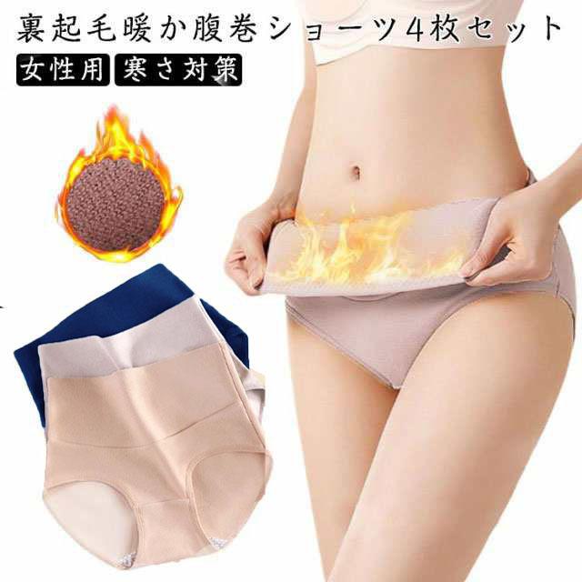 裏起毛 ショーツ 4枚セット ハイウエスト もこもこ 暖かい 腹巻ショーツ インナー ショーツ パンツ はらまき 保温 レディース 女性用 下着 肌着 子宮温活 ストレッチ 快適 引き締め 上品 無地 シンプル 防寒 冷え対策 寒さ対策 送料無料