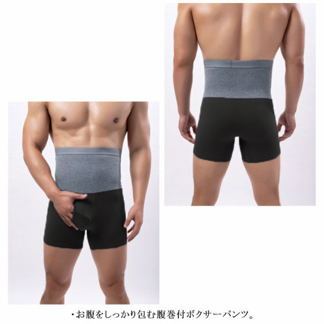 3枚セット 腹巻き付きパンツ メンズ インナー ボクサーパンツ 発熱吸湿 あったかインナー 下着 パンツ 腹巻き付きパンツ ハイウェスト 前あき 穴あき 前開き 選べる2タイプ 温活