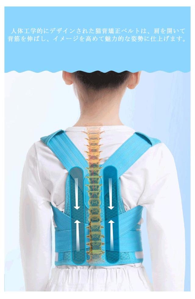 | 正しい姿勢で理想のボディへ!子供用 背筋矯正ベルト 猫背矯正サポーターは、自然に背筋がピーンと伸びた正しい姿勢へ導きます。 猫背の改善とともに、首こりや肩こりを解消し、近視予防など体のあらゆる健康面が改善されます。 猫背はお腹に脂肪がたまりやすく、肩こりや腰痛になるだけでなく、見た目の印象を悪くする。 人体工学的にデザインされた猫背矯正ベルトは、肩を開いて背筋を伸ばし、イメージを高めて魅力的な姿勢に仕上げます。 メッシュ素材で、通気性と快適性が向上します。 マジックテープを使用し、脱着便利で体型や好みの諦め加減に合わせて自由に調整可能。 猫背で姿勢が気になる方、肩や身体の歪みが気になる方、肩こりや腰痛がある方、パソコンやスマホ時間が長い方、美しい姿勢を保ちたい方などにオススメです。 | |
