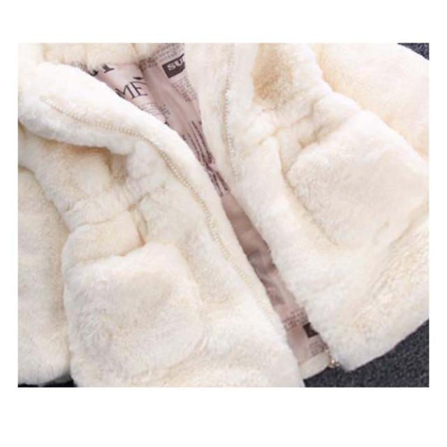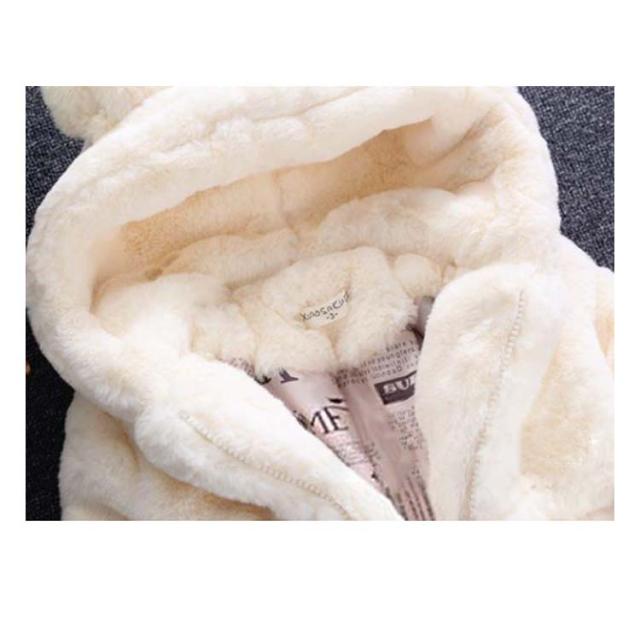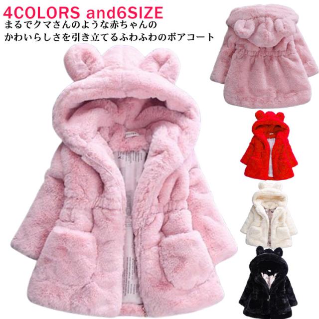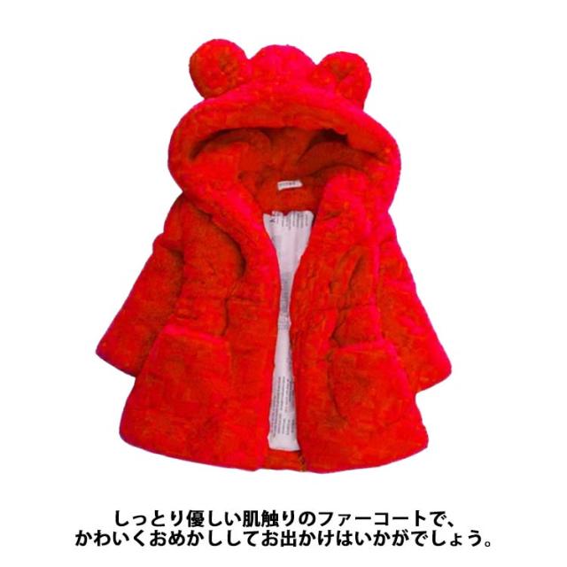 | 全4色×6サイズ!まるでクマさんのような赤ちゃんのかわいらしさを引き立てるふわふわのボアコート お耳が立ったキュートなフード付きます。 前はファスナー付きなので着脱もとっても便利! 全体的には毛布のような軽くてあたたかいボア素材です。 しっとり優しい肌触りのファーコートで、かわいくおめかししてお出かけはいかがでしょう。 防寒、保温に今年冬子供にギフトにも喜ばれること間違いなし! | |