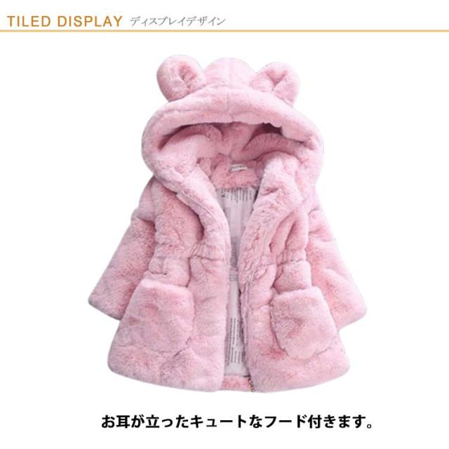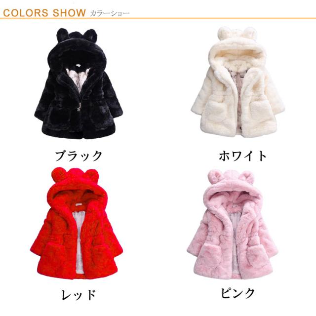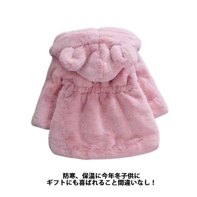 防寒 キッズ服 フード付き 可愛い ふわふわ 女の子 耳付き 子供服 中綿コート 無地 秋冬 ロングコート もこもこ あったか 大きいサイズ 前ファスナー 防風 ファーコート 雪遊び ミディアム丈 ポケット付き 無地 送料無料 クリスマス ギフト