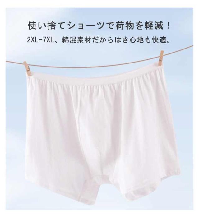 | 使い捨てショーツで荷物を軽減! 2XL-7XL、綿混素材だからはき心地も快適。 海外、国内旅行の他、スポーツやレジャーにも。 緊急避難時の衛生対策や、旅行の際にも便利。 通気性、吸収性にすぐれている! | |