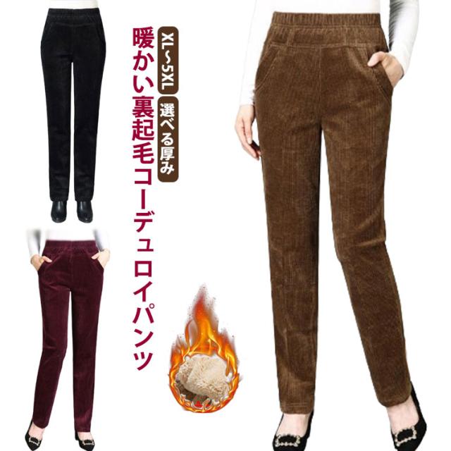 ストレートパンツ あったかパンツ コーデュロイパンツ レディース レディース 秋冬 秋冬 あったかパンツ 防寒 ぬくぬく ロング丈 裏起毛 裏ボア ロングパンツ ボトムス 大きいサイズ ウエストゴム 長ズボン 大人 カジュアル