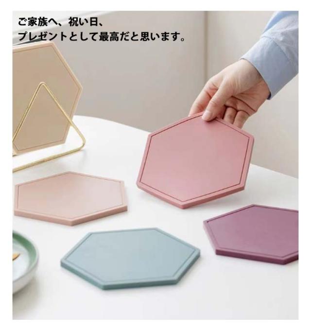 | シンプル・使いやすいコースター6枚セット 調理中の一時置きに、お鍋やお皿の敷物として食卓に出しても素敵なデザインです。 ティーポットやケトルはもちろん、シチュー鍋をテーブルに置く場合などにも活躍してくれます。グラタン皿など大き目のものを載せるなら、2枚並べてお使いいただくとちょうど良いです。 ご家族へ、祝い日、プレゼントとして最高だと思います。 | |