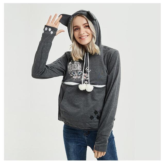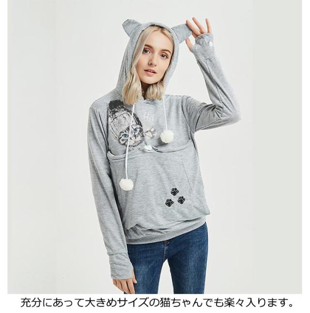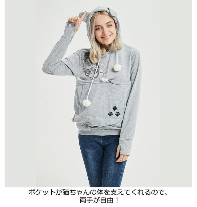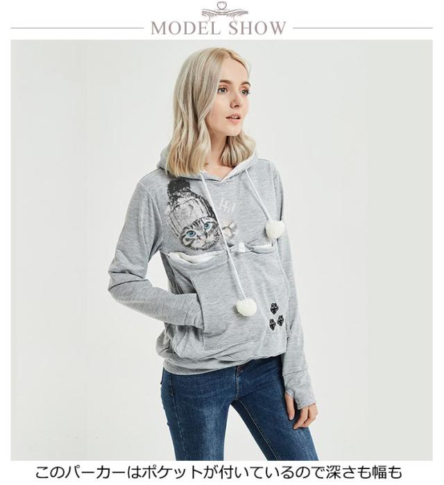 | 猫や犬(小型犬)、小さい動物を入れるためのパーカーです このパーカーはポケットが付いているので深さも幅も 充分にあって大きめサイズの猫ちゃんでも楽々入ります。 このパーカーは猫ちゃんを入れたまま立ち上がることはもちろん、 ポケットが猫ちゃんの体を支えてくれるので、両手が自由! あくまでも猫ちゃん(ワンちゃん)を入れたいがためのパーカーです^^ このパーカーで、愛猫愛犬といつも一緒♪ | |