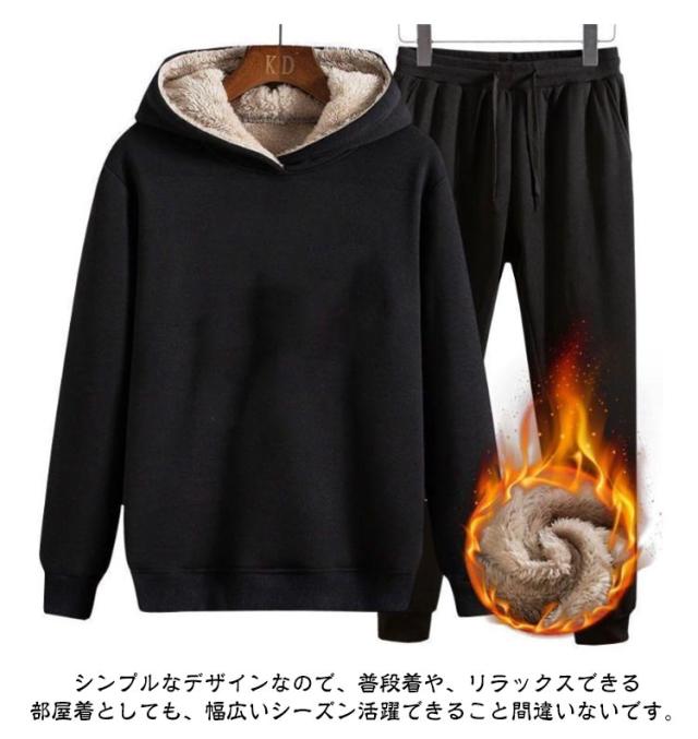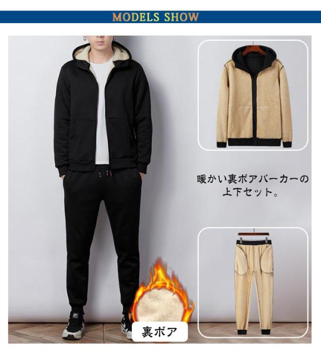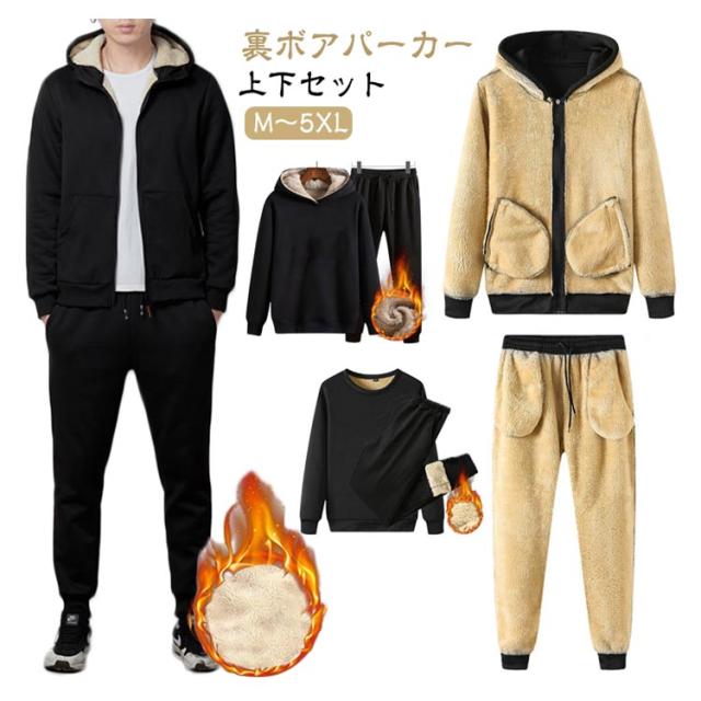 | 【裏ボアパーカー上下セット】【M〜5XL】 暖かい裏ボアパーカーの上下セット。 裏地は全面ボアで保温性を実現し、内側からほかほか暖かく春秋の寒さを感じません。 パンツはウェストゴム仕様で楽チン。 シンプルなデザインなので、普段着や、リラックスできる部屋着としても、幅広いシーズン活躍できること間違いないです。 | |