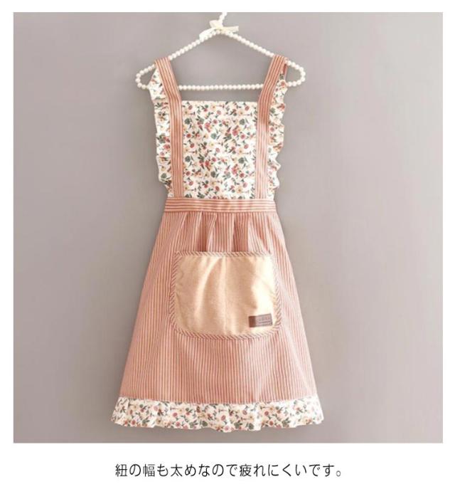きれいめ ストライプ エプロン フリルエプロン 可愛い ワンピースエプロン 花柄 花屋 胸当てエプロン 前掛け H型 ドレスエプロンカフェ ユニフォーム エプロン 女性用
