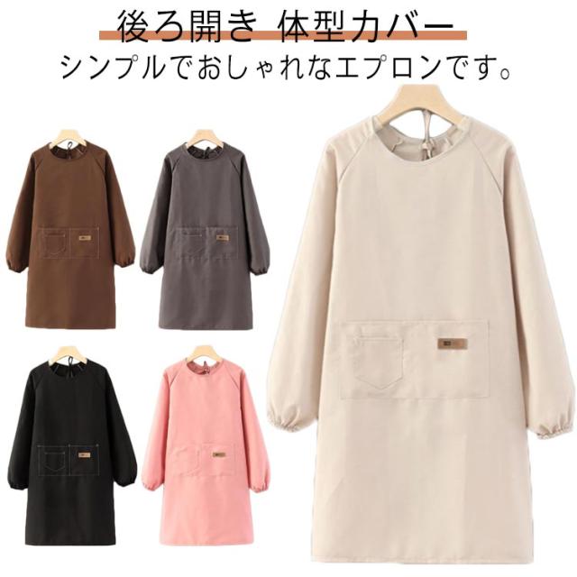 かっぽう着 ポケット付き カフェ 大人用 袖付きエプロン 後ろ開き レディース 体型カバー メンズ 割烹着 袖付きエプロン 掃除 料理 ユニフォーム おしゃれ ゆったり 大きめ 保育士 介護士 秋冬