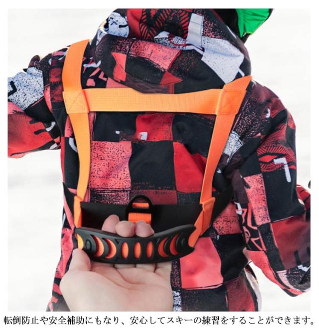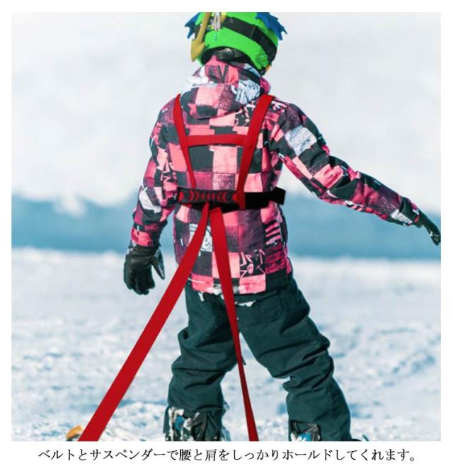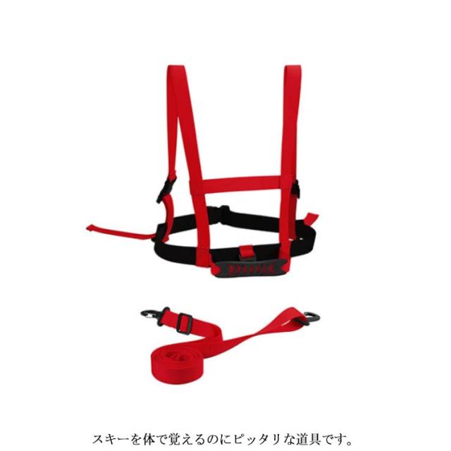 | お子様のスキーデビューに役立つスキーハーネスです。 転倒防止や安全補助にもなり、安心してスキーの練習をすることができます。 ベルトとサスペンダーで腰と肩をしっかりホールドしてくれます。 曲がりたい方向にベルトを引っ張ることで、補助しながら子どもにタイミングを伝えることができます。 言葉で指示するより的確に教えることができ、幼い子どもには大変便利! スキーを体で覚えるのにピッタリな道具です。 | |