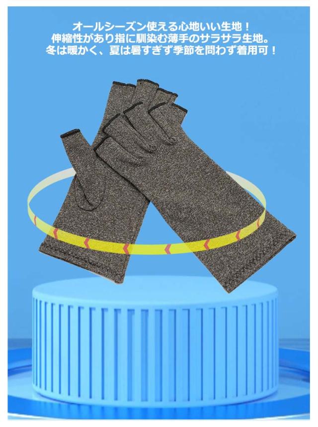 | 関節炎・腱鞘炎・リウマチ・バネ指など一役♪ 手や指の痛みや疲労を軽減してくれる着圧手袋。 適度な圧力とフィット感で血液の循環を促し、手指を優しくサポート。 デスクワークやスマホ操作、運転や育児など日常のさまざまなシーンで活躍します! 手首まで包み込むしっかりとした長さで手首の痛みや手の冷え予防にも! パソコンやスマホの操作など細かな日常操作がしやすい指抜きタイプ。 オールシーズン使える心地いい生地!伸縮性があり指に馴染む薄手のサラサラ生地。冬は暖かく、夏は暑すぎず季節を問わず着用可! 洗濯できる素材なのでいつでも清潔。汚れや匂いを気にせす長く使える。 | |