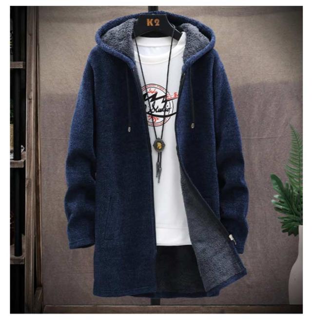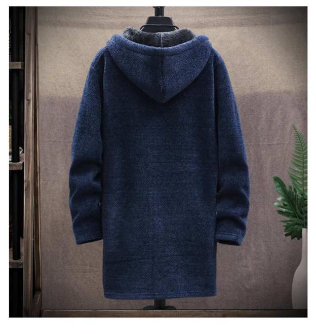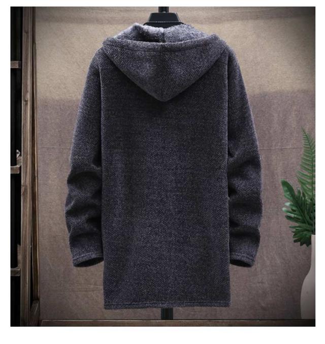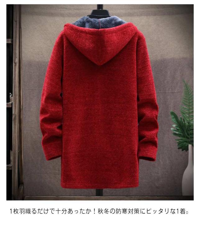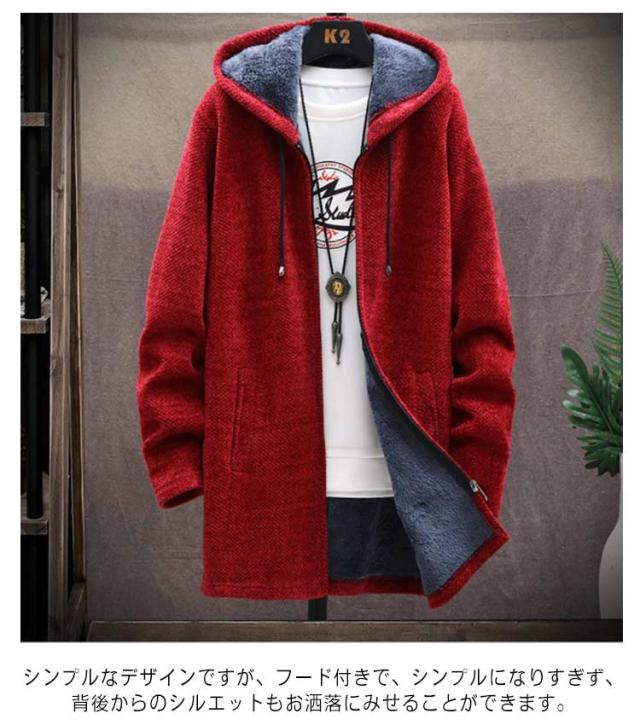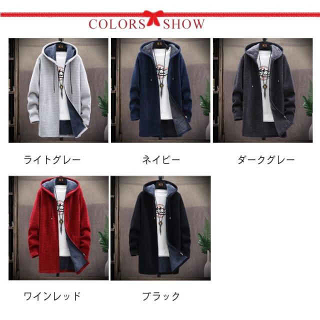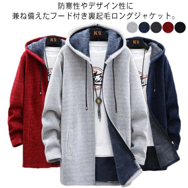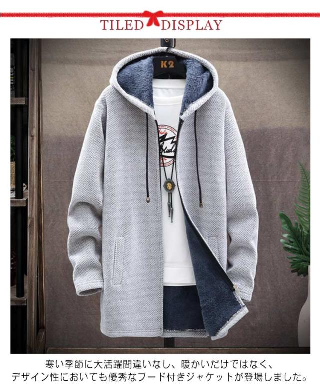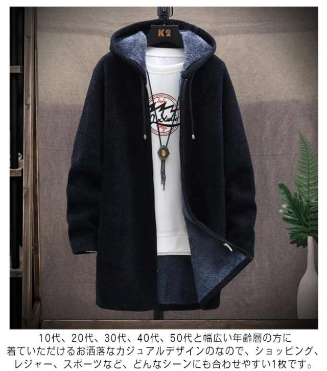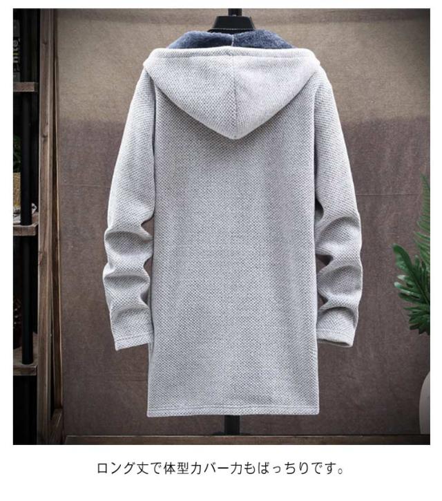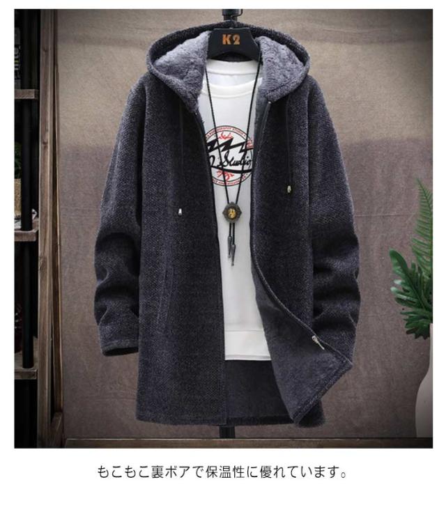 メンズ フード付き 裏起毛ジャケット 冬服 アウター ニットパーカー ロング 裏ボア ニットジャケット ベンチコート 秋冬用 ロング アウター 男性 ロング丈 上着 あたたかい フード付き カジュアル 防風 防寒 秋 冬