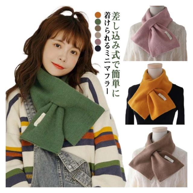 ミニマフラー マフラー ミニ 差し込み マフラー 無地 クロス 秋冬 ニット ストール ティペット 冬 レディース メンズ キッズ 子供 スヌード ネックウォーマー 可愛い おしゃれ 着脱簡単 暖か ミニマフラー 柔らかい 防寒 通勤