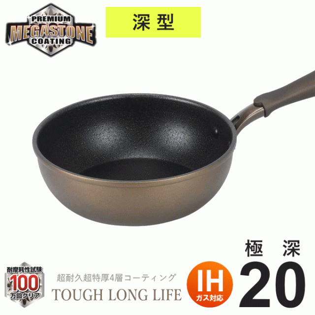 IH対応 ロングライフメガストーンフライパン 極深20cm