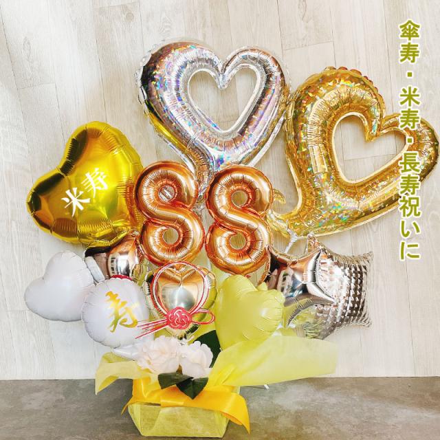 米寿祝い バルーン ギフト 傘寿 米寿 誕生日 バルーンアレンジ 長寿祝い おしゃれ 豪華 電報 発表会 80歳 88歳 長寿 卓上 お祝い 敬老の日 数字 プレゼント 男性 女性 黄色 ゴールド バルーンフラワー