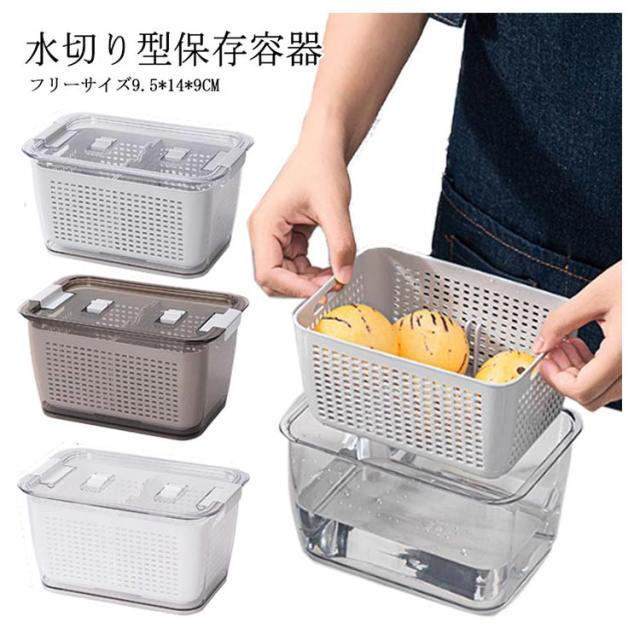 保存容器 水切り 水切り型保存容器 バルブ付き 角型 密閉容器 冷蔵庫収納 漏れない 野菜 果物 収納 フタ付き キッチン 透明