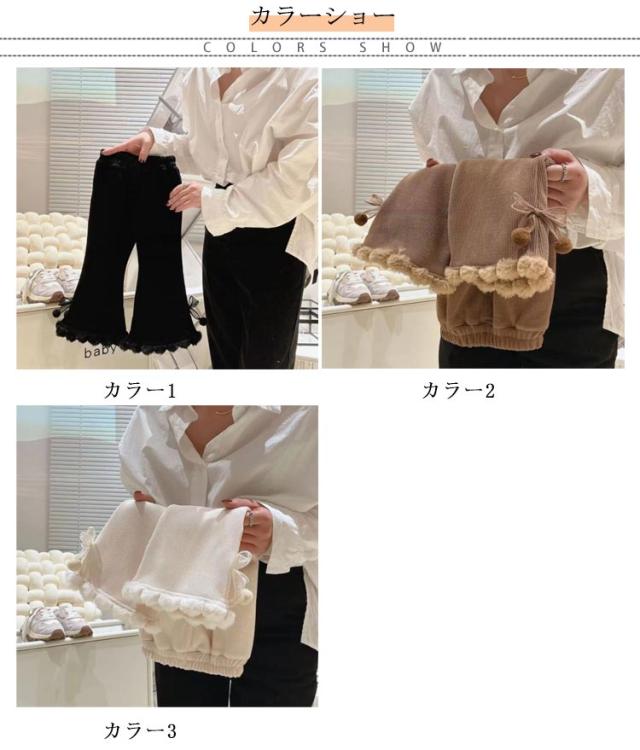 | ポンポン裾、かわいいポンポン付き!女の子フレアパンツが新入荷! 生地はしっかりとして、柔らかくて、さらりとした手触りです。 裏起毛、暖かみ素材で肌寒い日にピッタリ。 デザインもシンプルで、どんなお洋服にも合わせやすくて1枚持っているととっても便利。 | |