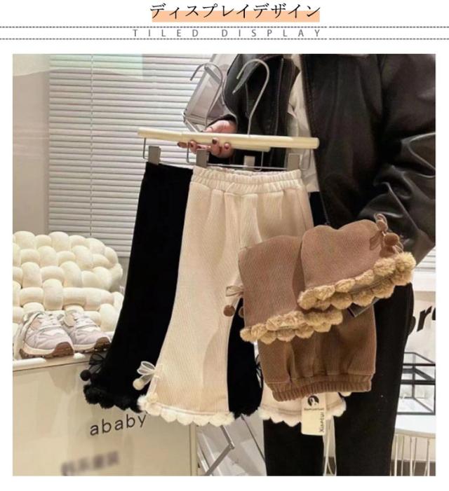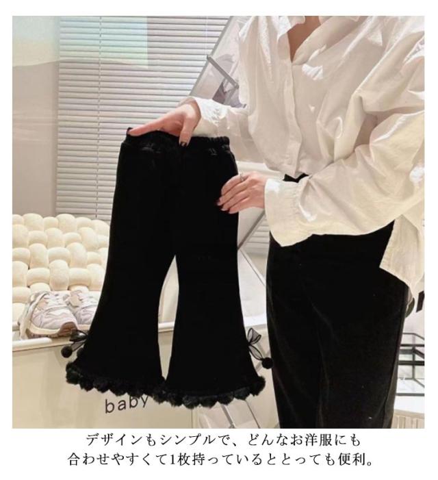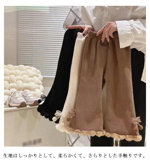 ワイドパンツ 冬 フレアパンツ ポンポン裾 裏起毛パンツ ベルパンツ ポンポン裾 あったか ロングパンツ 女の子 リボン あったか 暖かい 長ズボン キッズパンツ キッズ おしゃれ 80 90 100 110 120