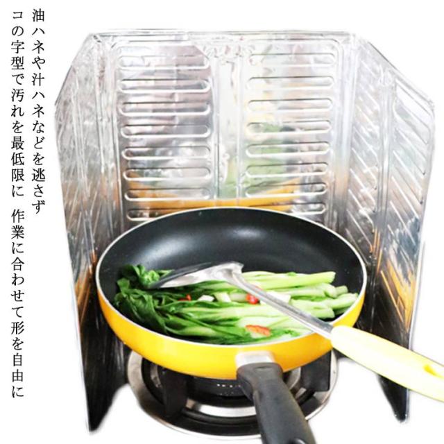 | 油ハネや汁ハネなどを逃さず 組み立てるの必要がなく、使いたい時に、サッと置くだけで使用できるレンジガードです。油が飛び散りやすいレンジ周りの油ハネを最小限にしっかりとガードできます。掃除の時短にもつながります。 経済的 油汚れも、水洗いで楽に落とせて繰り返し使えるので経済的な油はねガードです。 コの字型で汚れを最低限に コの字タイプだから、気になる油ハネをしっかりガードして、コンロ回りを汚しません。 作業に合わせて形を自由に 作業に合わせて、ー型、L型、コ型で2つのコンロを囲ったり使いやすく形を変えられます | |