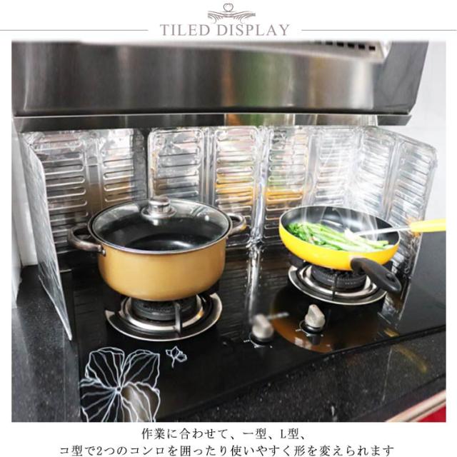 レンジガード 油はねガード 3面タイプ お手入れ簡単 キッチン 油はね コンロカバー コンロ用カバー 揚げ物ガード 水はねガード 折りたたみ式 水洗い アルミホイル