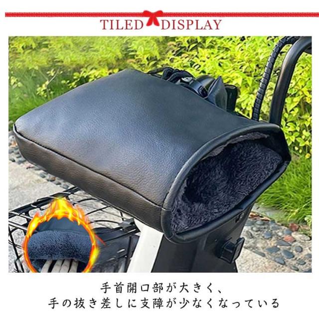 | 調整できるミラー開口部が広くて多車種に対応可能 取り付ける際はハンドルバーに差し込み、縛るだけなので、工具が不要で取り付けとても簡単 手首開口部が大きく、手の抜き差しに支障が少なくなっている 表面に高い防水性能を持つPUレザー素材を採用して急な雨が降りしてもバイク乗りの手も乾燥と快適さがキープできる 裏地には保温発熱するフリース素材が使用されて熱が溜められます。 | |