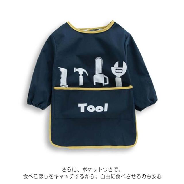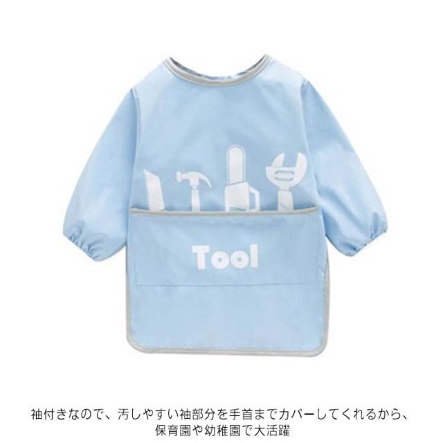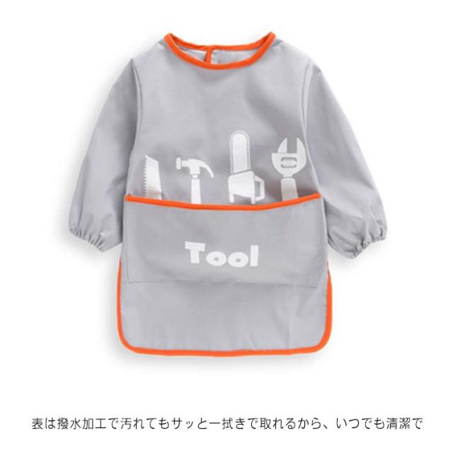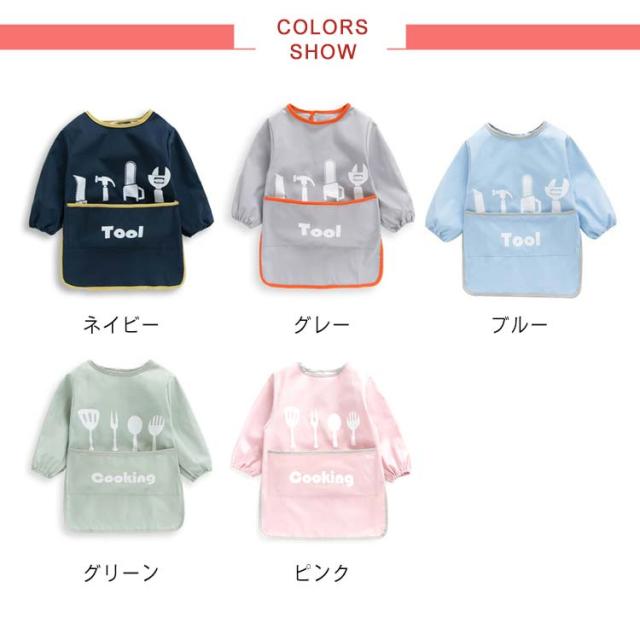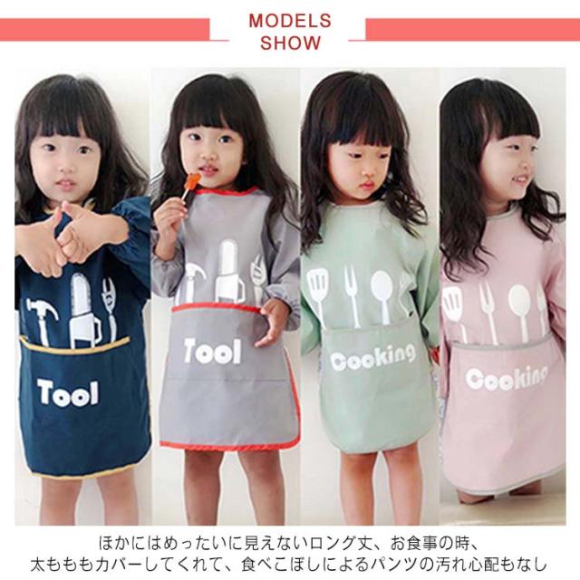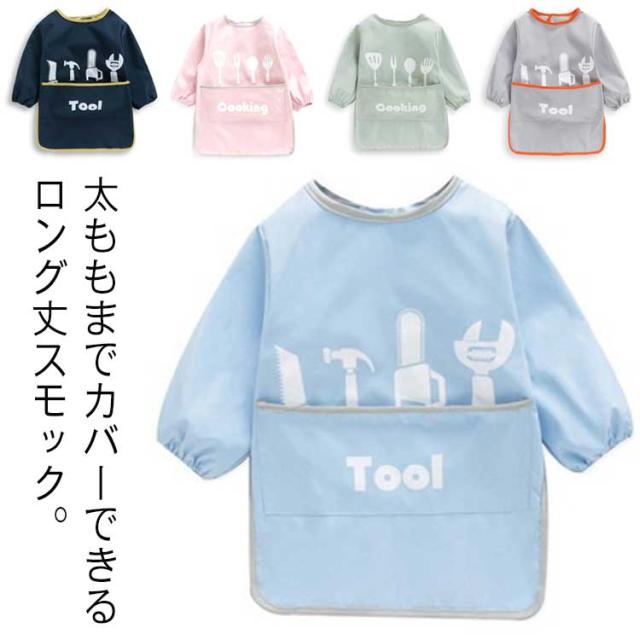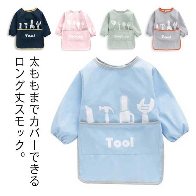 ロング丈スモック キッズ 男の子 女の子 防水 汚れ防止 ポケットつき 食べこぼし防止 ベビー 保育園 幼稚園 外遊び 長袖 お絵描き お食事 90cm 100cm 110cm 120cm 130cm 140cm