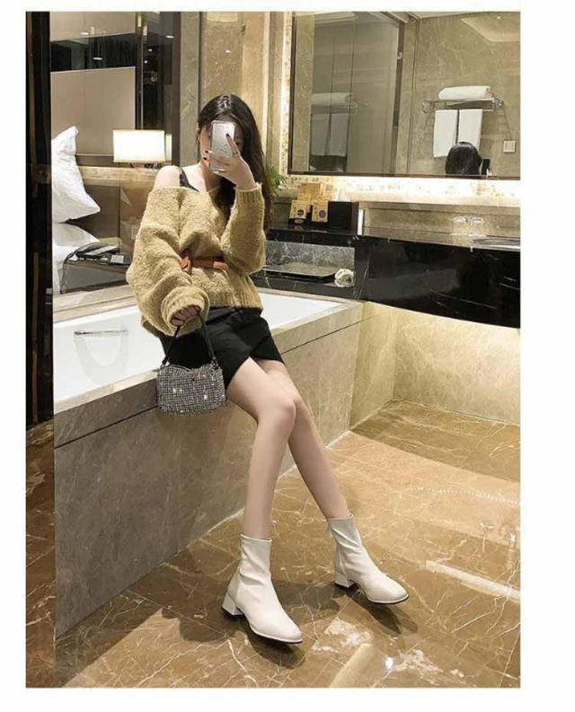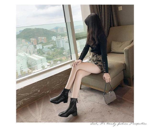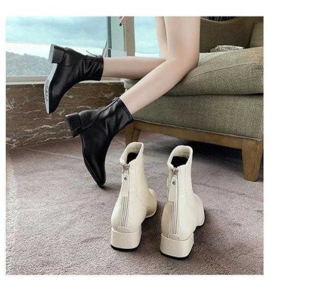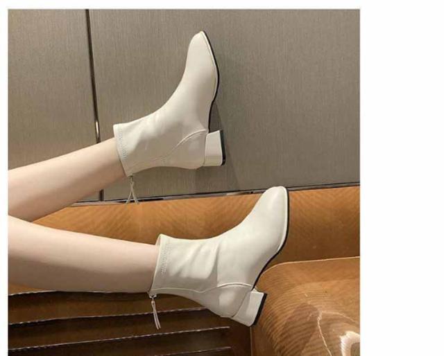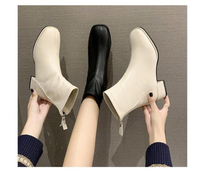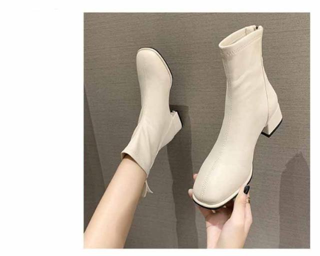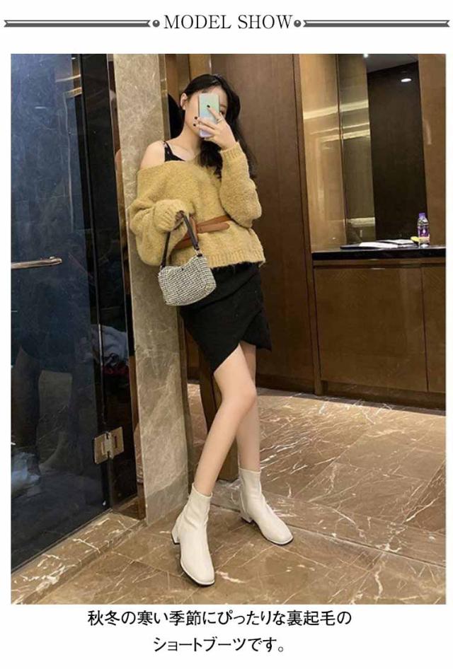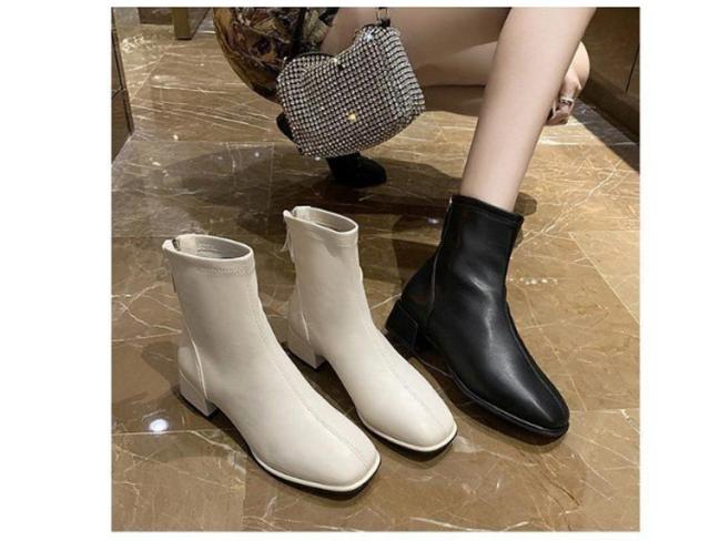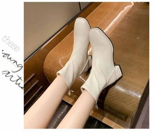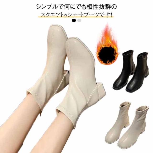ブーツ レディース ショートブーツ スクエアトゥ 裏起毛 ブーツ ローヒール 太ヒール ファスナー付き バックジッパー ショートブーツ レディース スクエア ブーツ チャンキーヒール 履きやすい 黒 ベージュ 送料無料