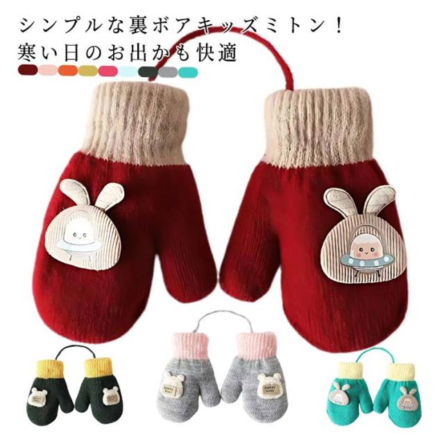 裏ボア ミトン手袋 ベビー 防寒 手袋 ミトン 冬 ボア手袋 新生児 赤ちゃん キッズ グローブ 女の子 男の子 厚手 裏起毛 紐付き もこもこ ふわふわ 暖かい おしゃれ かわいい 可愛い 無地 雪遊び 通園 女児 幼児 1歳