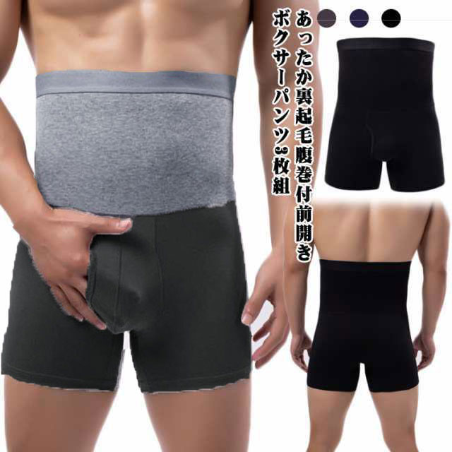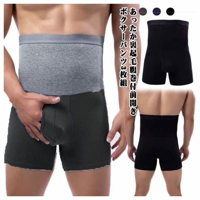 腹巻き付きパンツ メンズ 裏起毛 ボクサーパンツ あったかインナー 発熱吸湿 インナー 下着 パンツ 3枚セット ハイウェスト 前あき 穴あき 前開き 選べる2タイプ 温活 防寒