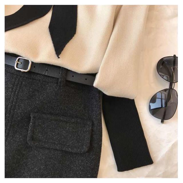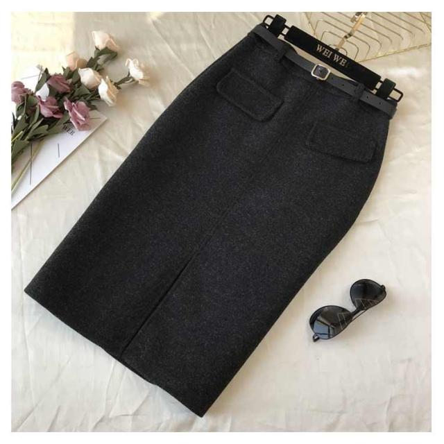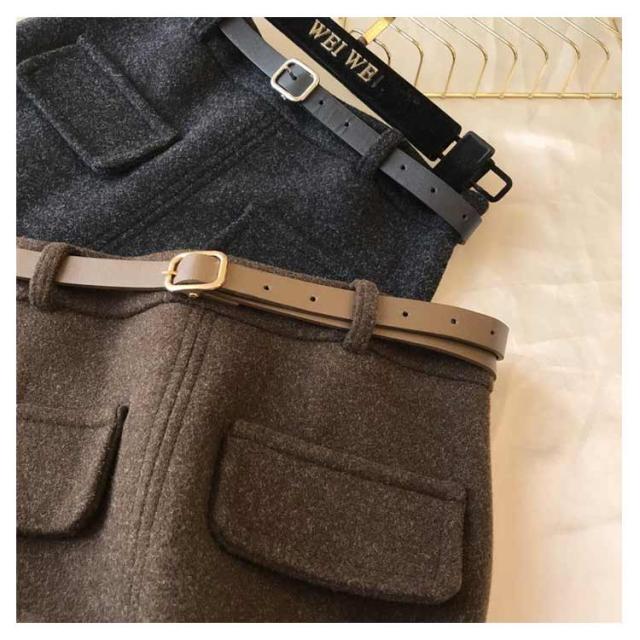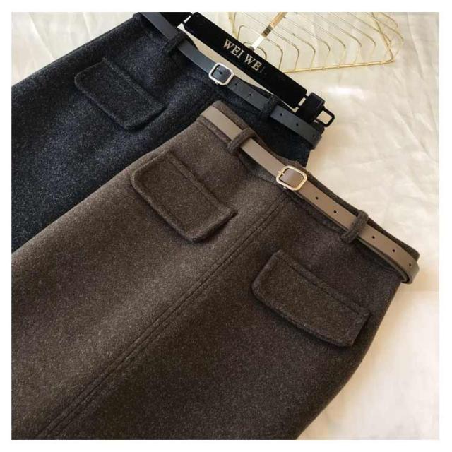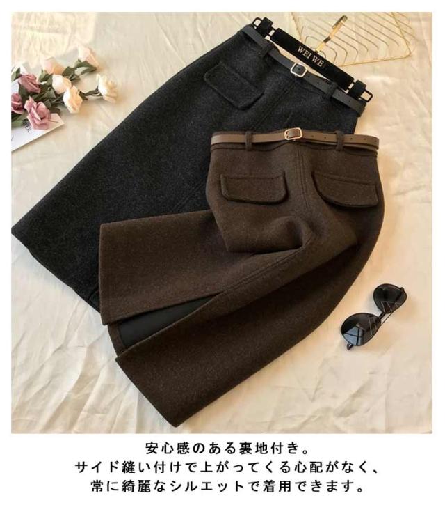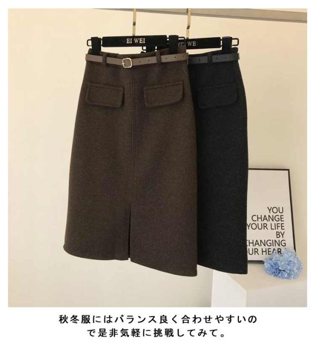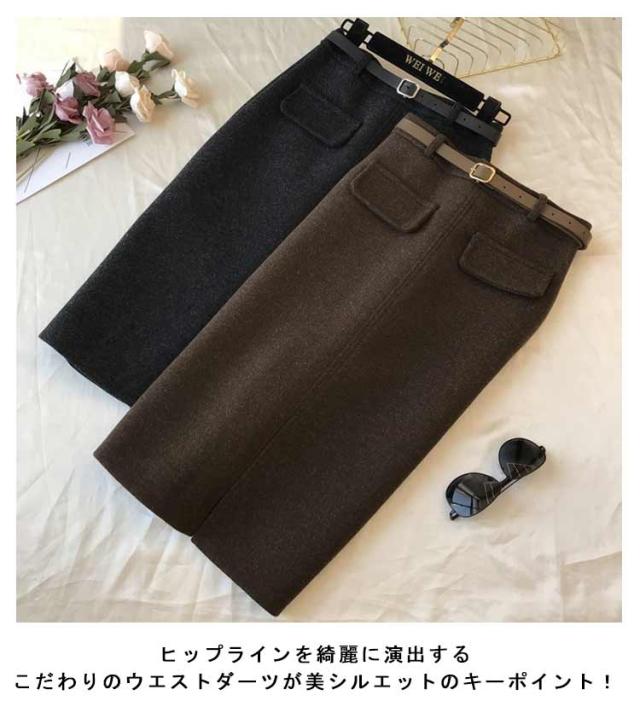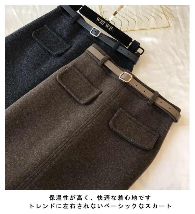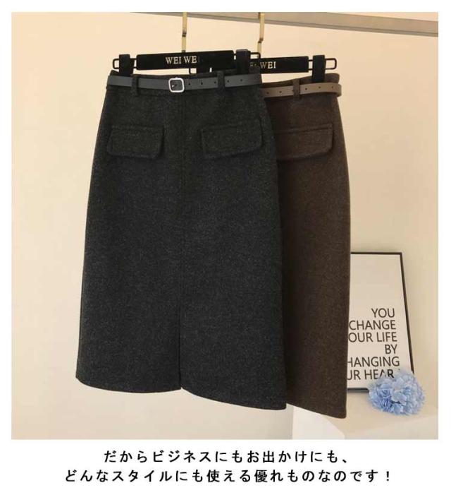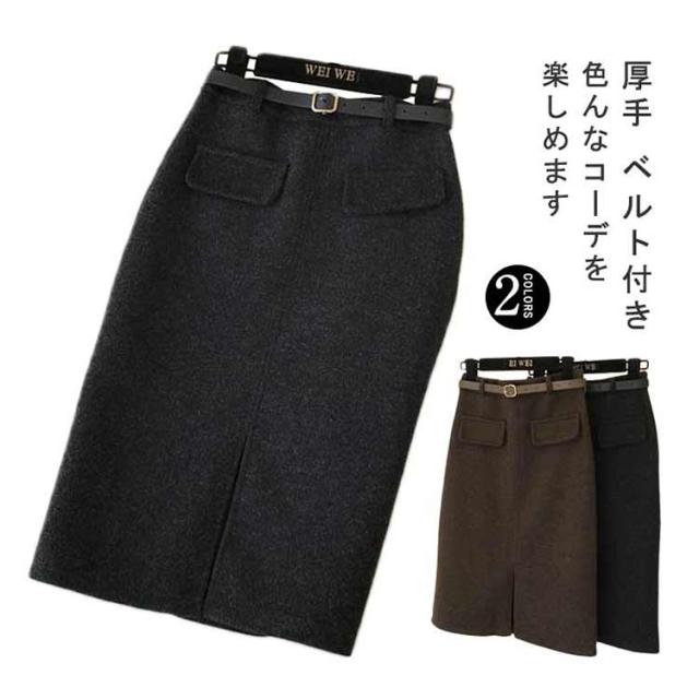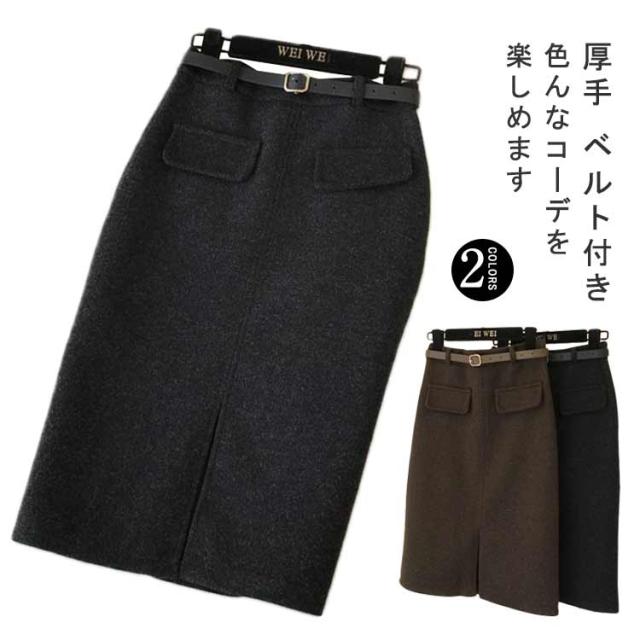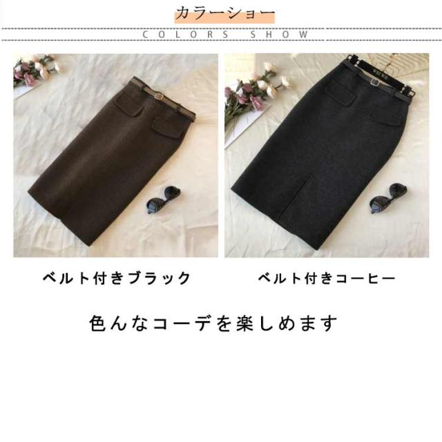 ベルト付き スカート ミディアム丈 タイトスカート 全5色 4サイズ レディース ボトムス ペンシルスカート 秋 冬 シンプル かわいい オシャレ ブラック ホワイト 黒 白 通勤 OL 厚手 大人 上品 着痩せ 韓国 ファッション 送料無料