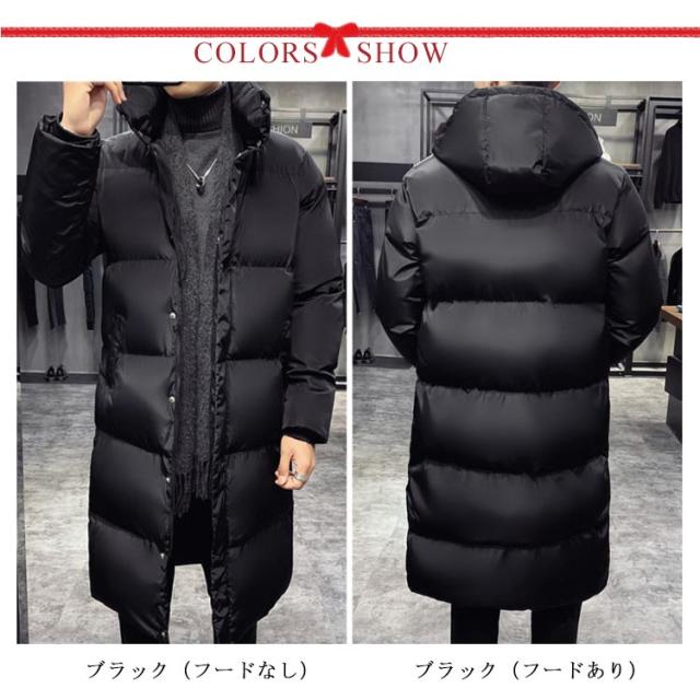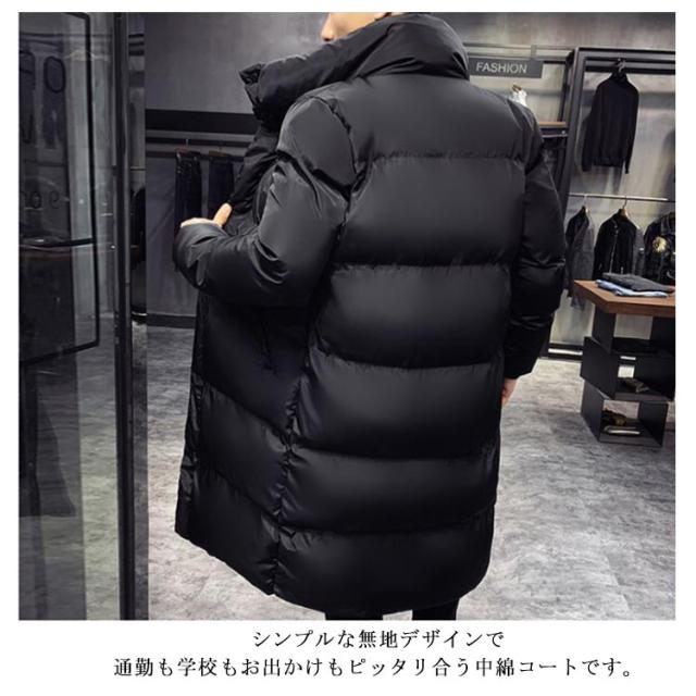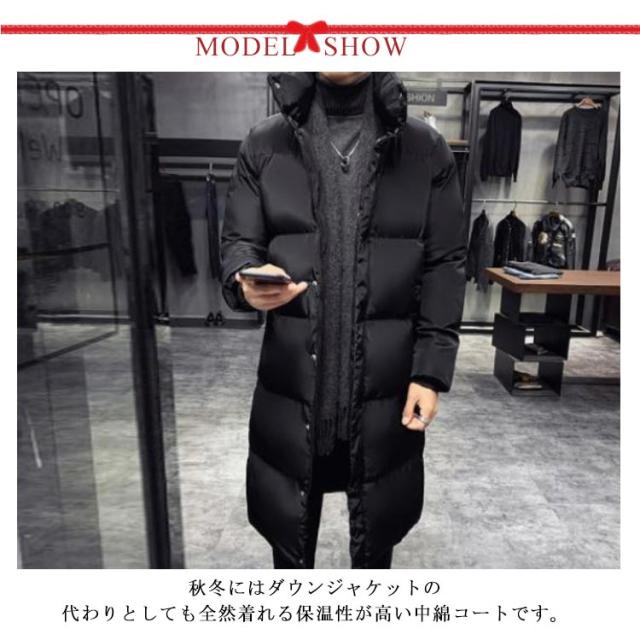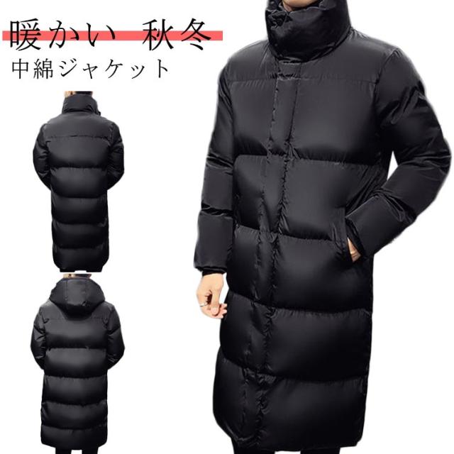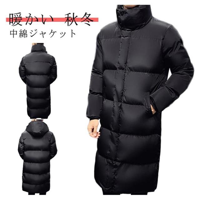 ベンチコート 冬服 暖かい メンズ ロングコート 防寒服 無地 ジャンパー 厚手 アウター 保温 防風 フード付き 中綿ジャケット 大きいサイズ 中綿コート 通勤 通学 ベンチコート 黒