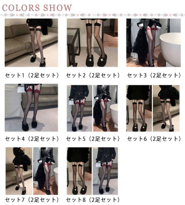 ガーター ストッキング 2足セット ニーハイソックス オーバーニー 膝上 滑り止め タイツ 薄手 透け透け 美脚 セクシー ランジェリー ベビードール 女性 レディース インナー 下着 コスプレ