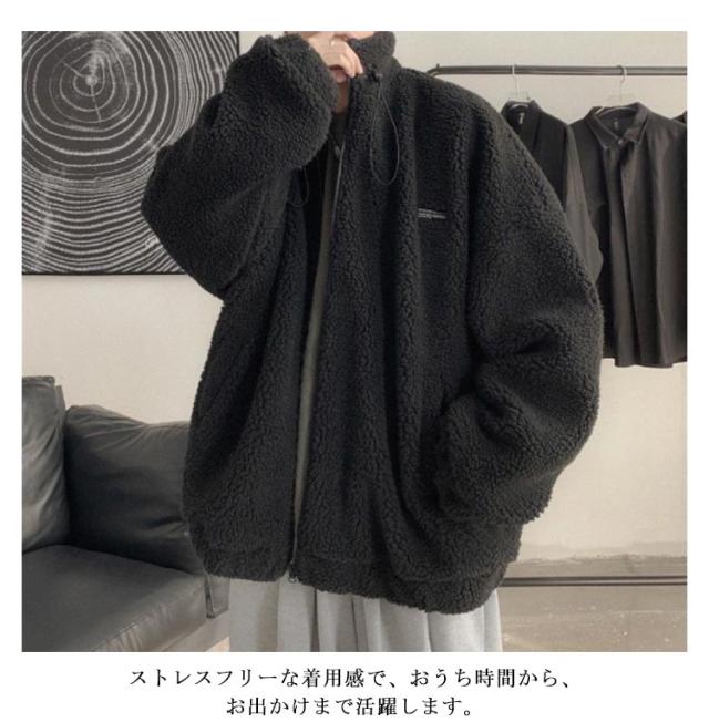 シンプル レディース ボア スタンドネック ジャケット ボアコート ボアブルゾン 防風 あったか もこもこ 防寒 ブルゾン 秋冬 カジュアル 無地 ボア おしゃれ ジップアップ 体型カバー 男女兼用